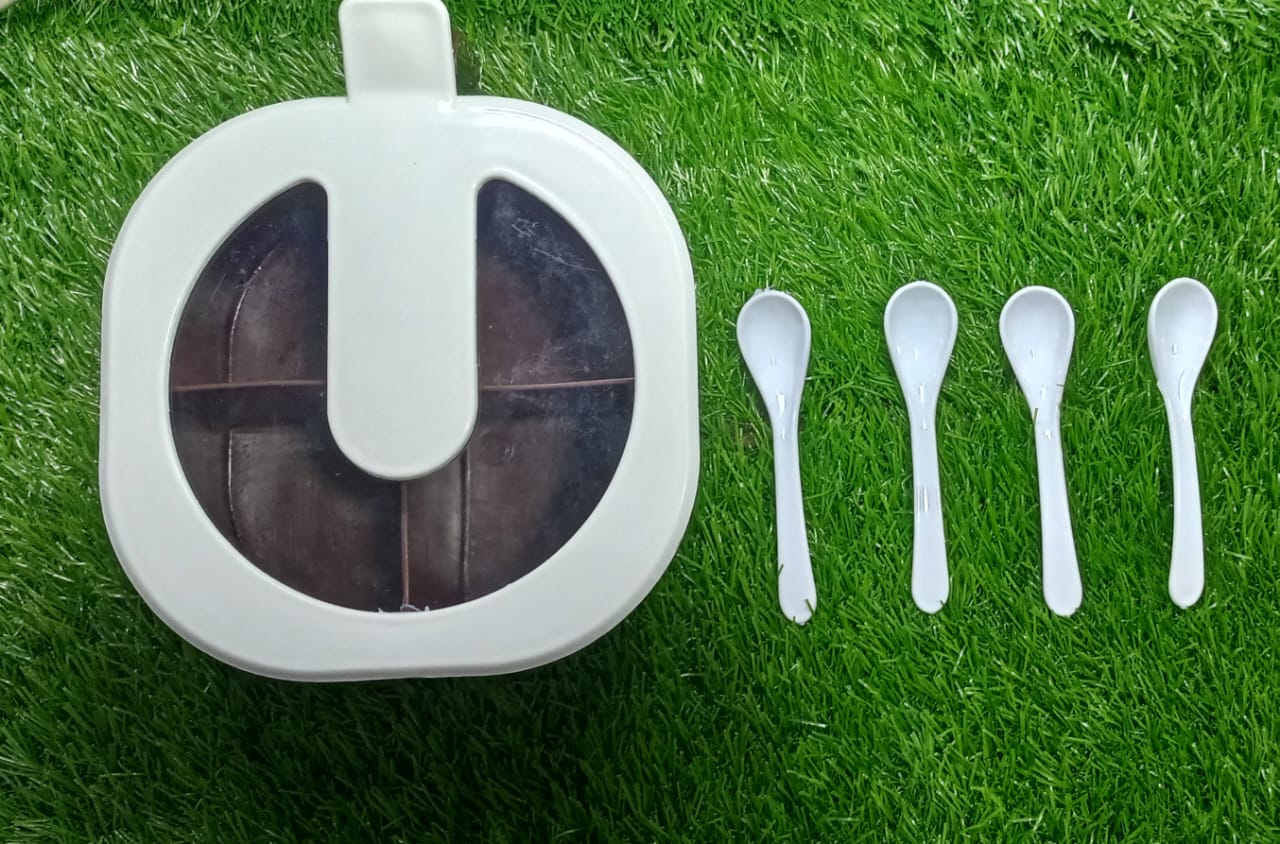 Modern 4-in-1 Spice Kit – 4 Compartments Seasoning Jar with Free Spoons