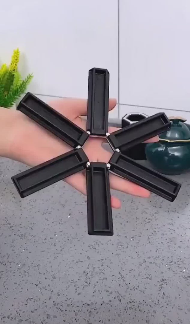 The star-shaped architecture expands to provide a wide, balanced surface for large pots, pans, and serving dishes. When the meal is over, the mat folds into a slim, rod-like shape, freeing up valuable countertop and cabinet space. Whether you are serving a sizzling skillet in a professional dining room or a home-cooked meal, this non-slip, scratch-resistant placemat ensures your surfaces remain pristine.
